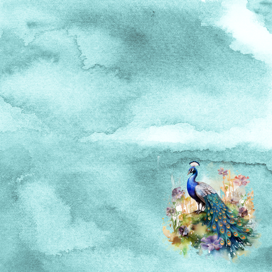 Watercolor Wildlife Collection Peacock 12 x 12 Double-Sided Scrapbook Paper by SSC Designs - 15 Pack